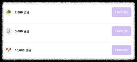 너무나도 간단합니다. 2,000걸음 5,000걸음 10,000걸음 걸으면 걸음수에 따라 코인을 주는 방식입니다. 그리고 모인 코인을 200 MED 모으면 우리나라 기준 대표 거래소 업비트 빗썸에 코인을 보내면 끝입니다. 그 외 편리기능도 있지만 수익에 관련된 사항만 설명드리겠습니다.