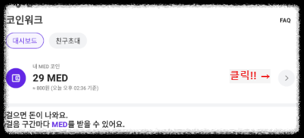 "메디패스" 설치 가입까지 마치 섰으면 이제 거의 끝이라고 보셔도 됩니다. 아래 이미지에 "코인 워크"를 클릭하시면