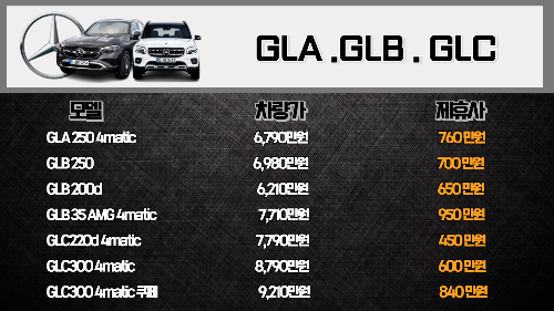 GLA 모델은 전달대비 할인은 조금 줄어든 모습이네요. 역시 수입차는 재고 상황에 따라 변동이 큰 편인 거 같습니다.