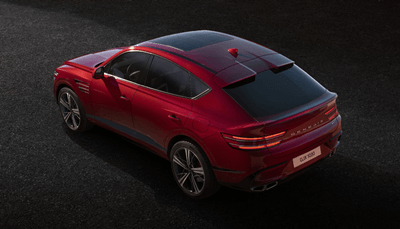 GV80 쿠페의 후면은 기존의 GV80보다 현대적이고 유리한 루프라인으로 잘 구성되었습니다. 전체적으로 매끈하고 스포티한 인상을 주며, 윈도 간격이 얇아지고 스포일러가 역동적으로 배치되었다면 더욱 스포티한 분위기를 연출할 수 있었을 것으로 생각됩니다.