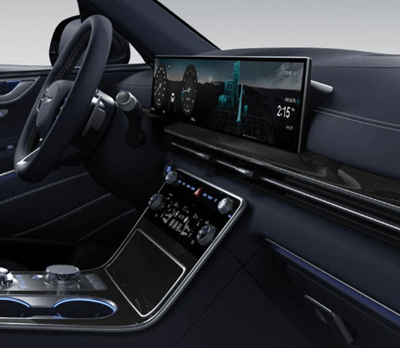 GV80 페이스리프트 모델은 외관 변화보다는 주목할 만한 디스플레이를 갖추고 있습니다. 이 모델은 27인치 대각선의 대형 디스플레이를 도입하여 사용자에게 더 큰 시각적 경험을 제공합니다. 비록 컴퓨터 모니터처럼 가로로 넓은 4:3 비율은 아니지만, 긴 형태의 화면으로 조작성을 개선하였습니다. 기존 모델에 비해 멀리 위치한 화면 부분에 접근하기가 용이해졌습니다.