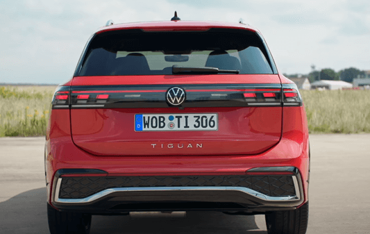 신형 티구안의 후면 디자인도 새롭게 변화하였습니다. 관통형 테일램프 디자인이 식상하지 않게 잘 구현되어 있어, 전체적으로 균형 잡힌 외관을 보여줍니다.