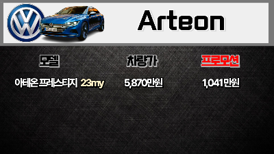 - 아테온 프레스티지 (2023년): 차량 가격 5,870만 원, 최대 프로모션 1,041만 원 (개별소비세 혜택 포함)
