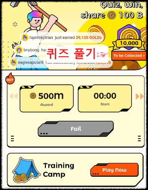퀴즈 풀기 보상 :퀴즈 표기는 메인 화면에 보시면 퀴즈 표기가 있습니다,