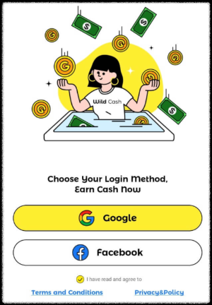 2. 와일드 캐시 "WILD CASH"를 구글 아이디로 간편 가입 ( 장점으로는 개인정보를 별도로 기입하실 필요가 없습니다 )