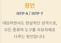 ISTP는 다재다능한 면이 적고 내 방식대로 하려는 기질이 강합니다.